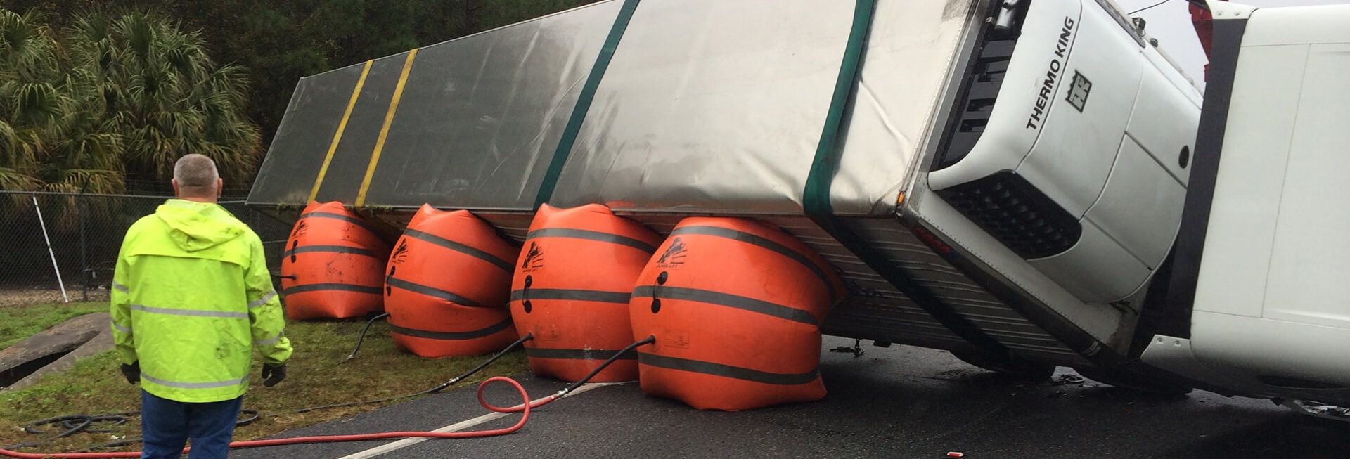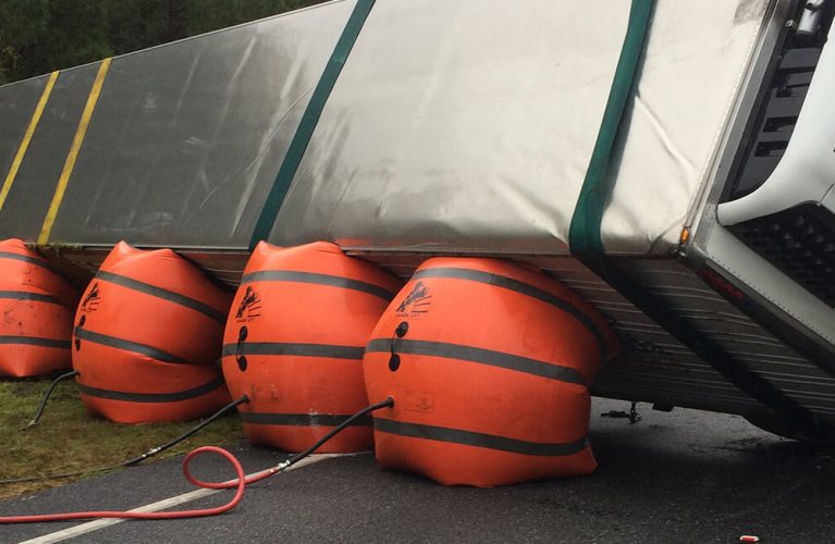 We have an air cushion recovery system that allows us to upright loaded tractor-trailers without the need to offload its cargo — saving time, labor and the load.