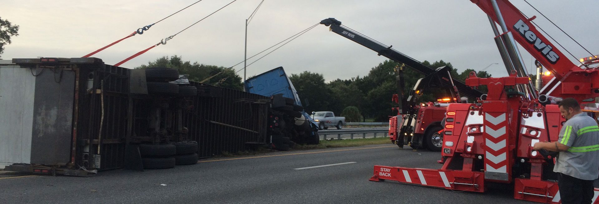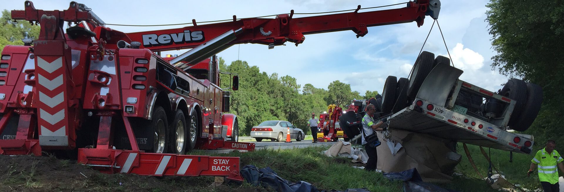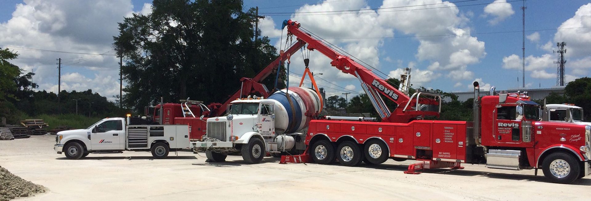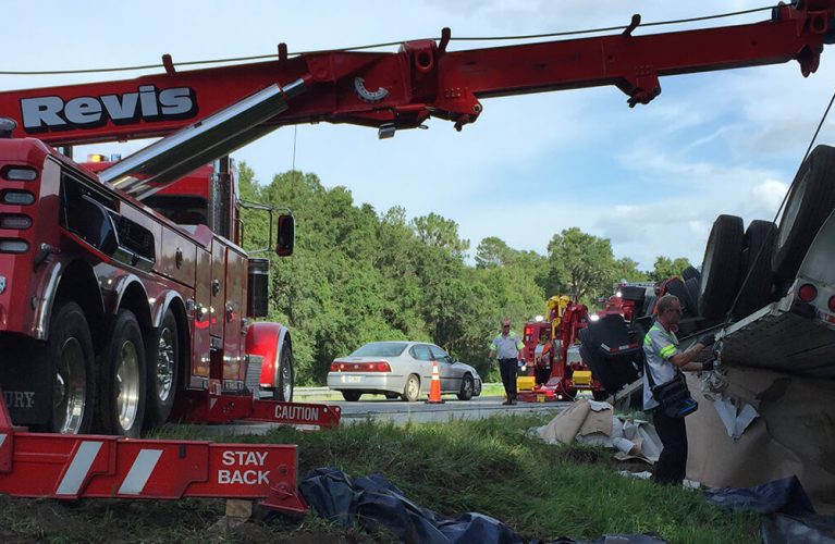 Revis Towing & Recovery of Ocala Inc. has a large selection of specialty equipment to safely and efficiently recover all types of commercial vehicles and equipment. This includes a 50-ton rotator with state-of-the art technology capable of rotating 360 degrees and recovering any size tractor-trailer or heavy equipment with minimal traffic lane blockage.