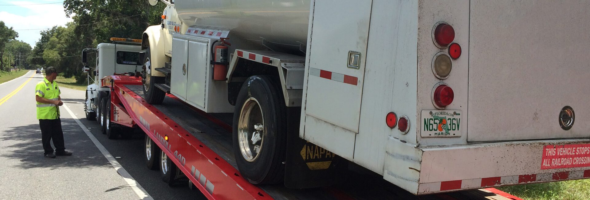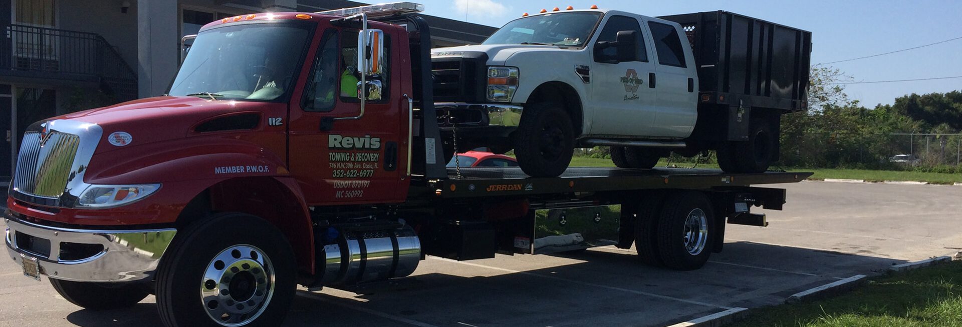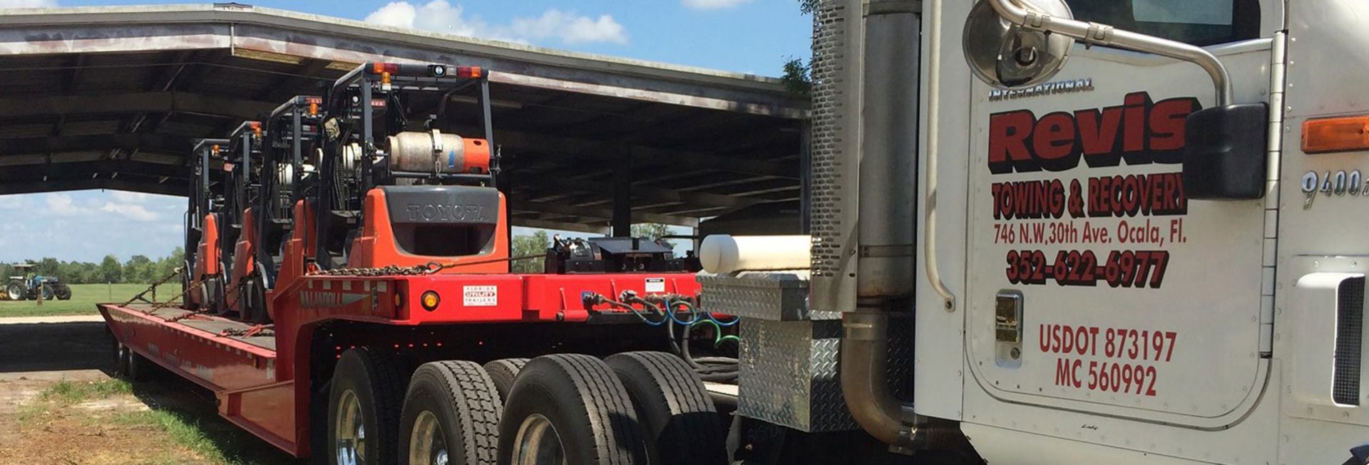 Revis Towing & Recovery of Ocala Inc. has a transport fleet ranging from small to heavy-duty rollbacks and a Landoll trailer. We routinely haul forklifts, generators, containers, mowers, boats, excavators, buses and construction equipment. We provide emergency storm support, handle oversized loads and transport local or long distance.